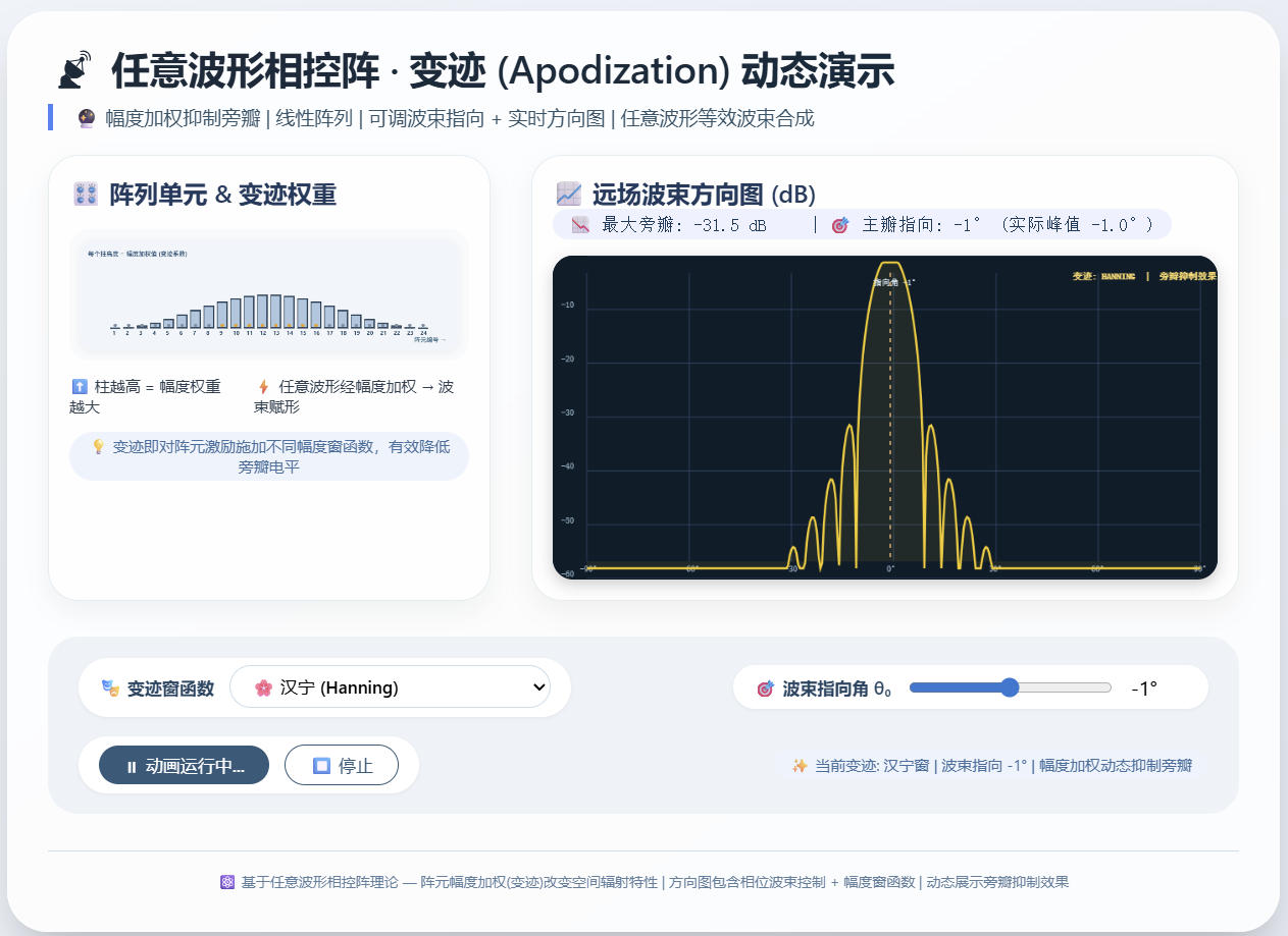 图(4)变迹实现旁瓣抑制演示图(点击图片可实现动画交互)