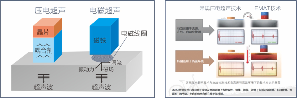 电磁超声波检测和传统超声检测技术相比,电磁超声波检测具有不需要耦合剂、不需要打磨工件表面、非接触式检测、更适合高温环境检测等优点。广泛用于石油天然气管道、压力容器、铁路轨道、钢铁生产、桥梁监测、风力和火力发电等。